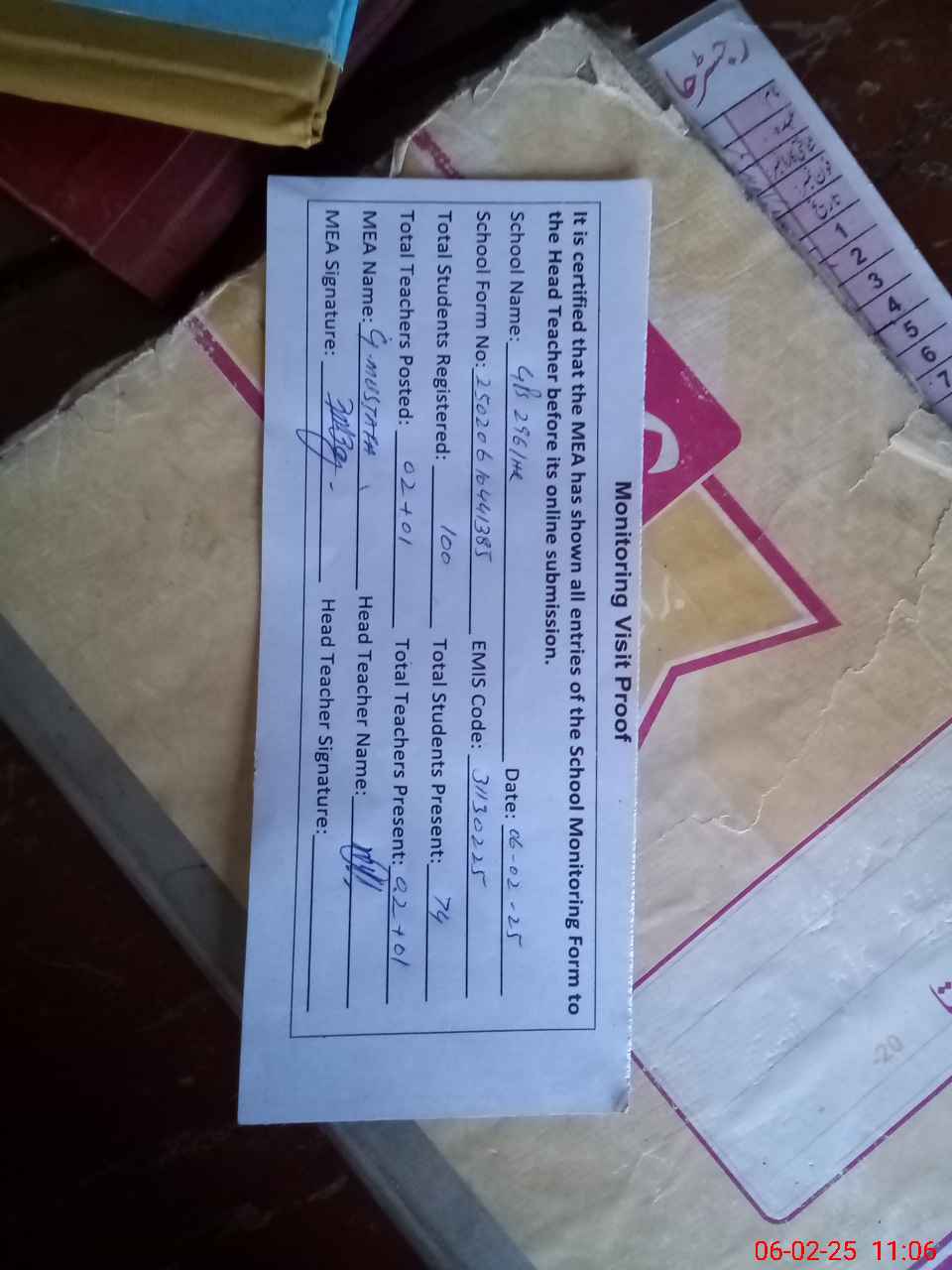 | Certified that this School was Inspected by the Undersigned MEA/DMO Today and the Information Stated Above is as Per Record. | |||||