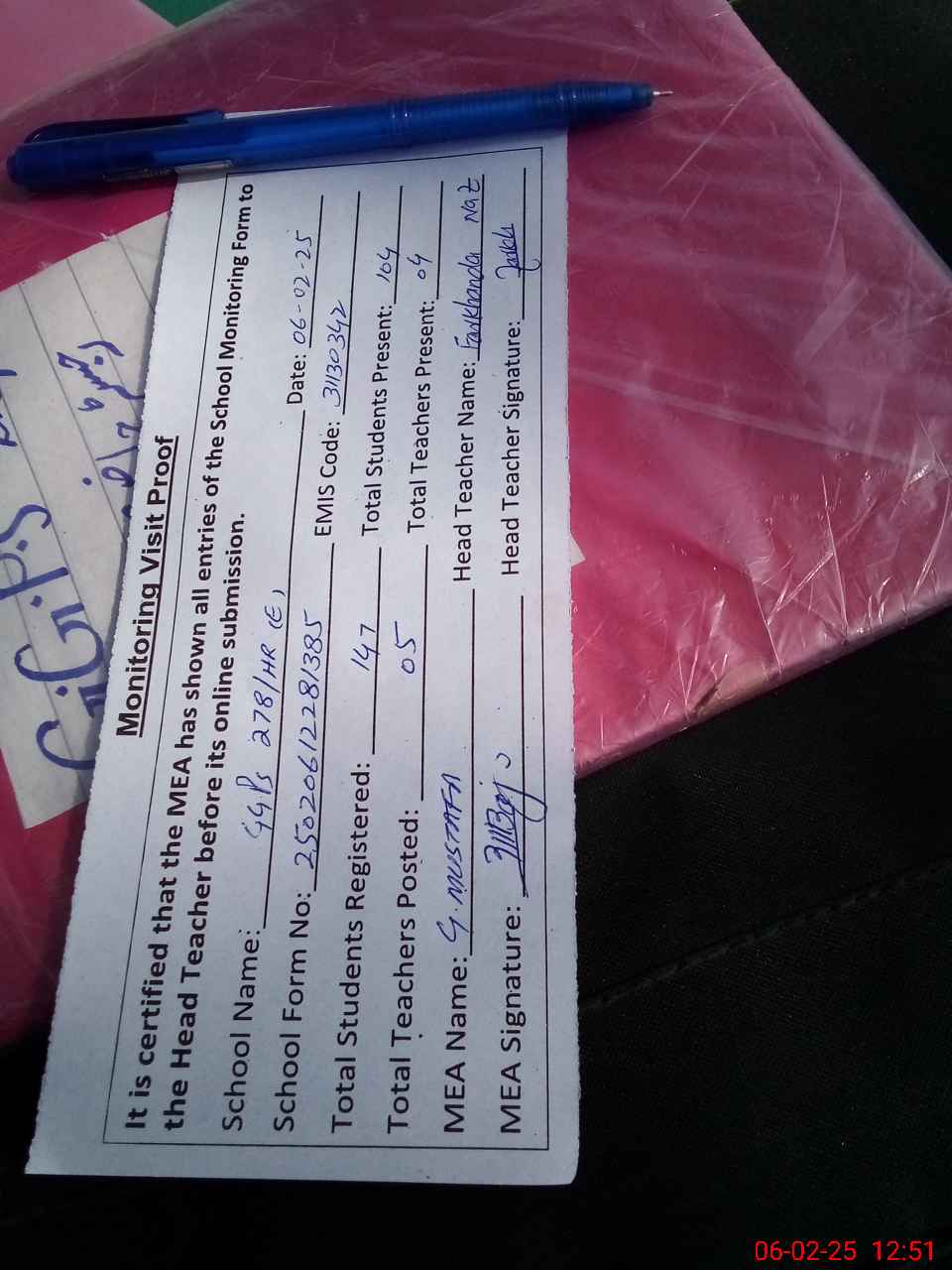 | EMIS Code: 31130342 | Name of School: GGPS CHAK NO 278 HR E | |||