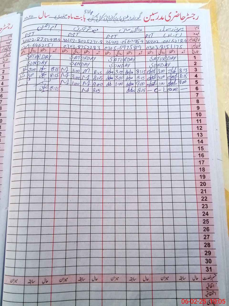 | CNIC | Full Name | Designation | R/C | Absence During Last Calender Month |