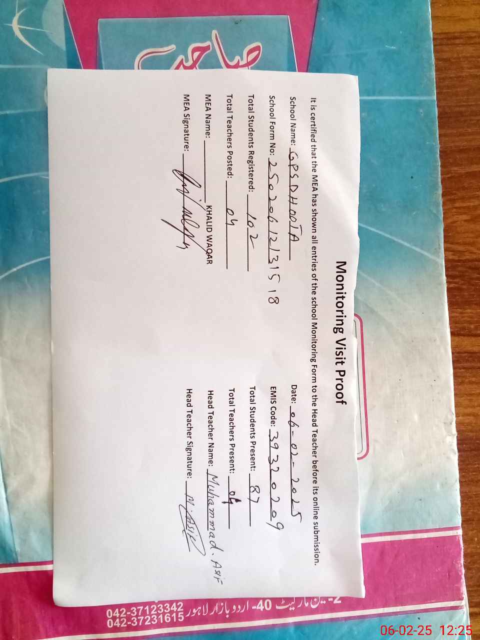 | EMIS Code: 39320209 | Name of School: GPS DHOOTA | |||