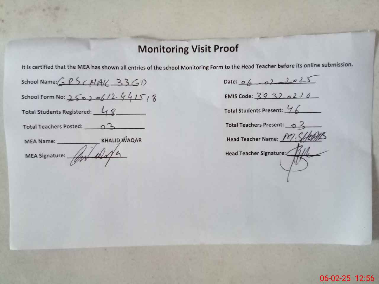 | EMIS Code: 39320210 | Name of School: GPS CHAK 33/G.D | |||