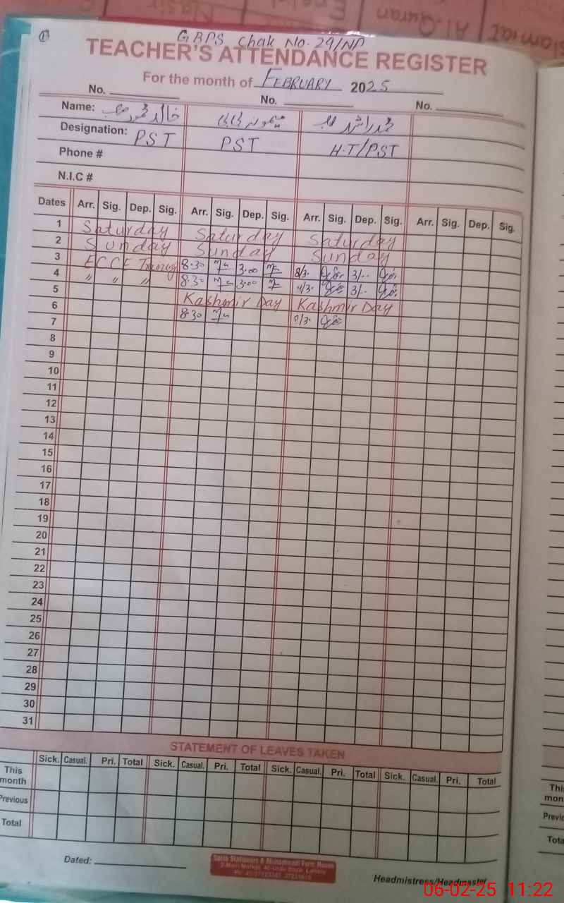 | Name: MRa**** Designation: (School Headmaster's/Headmistress's) PST/PTC/JV Phone/Cell Number: 03**** |