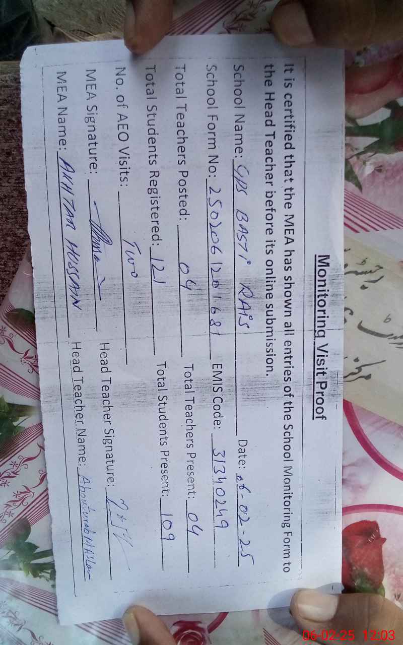 | EMIS Code: 31340249 | Name of School: GPS BASTI RAIS | |||
