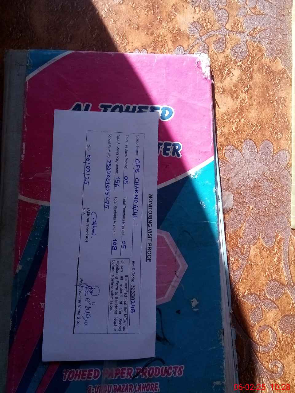 | EMIS Code: 32330248 | Name of School: GPS CHAK NO. 6/4 L | |||