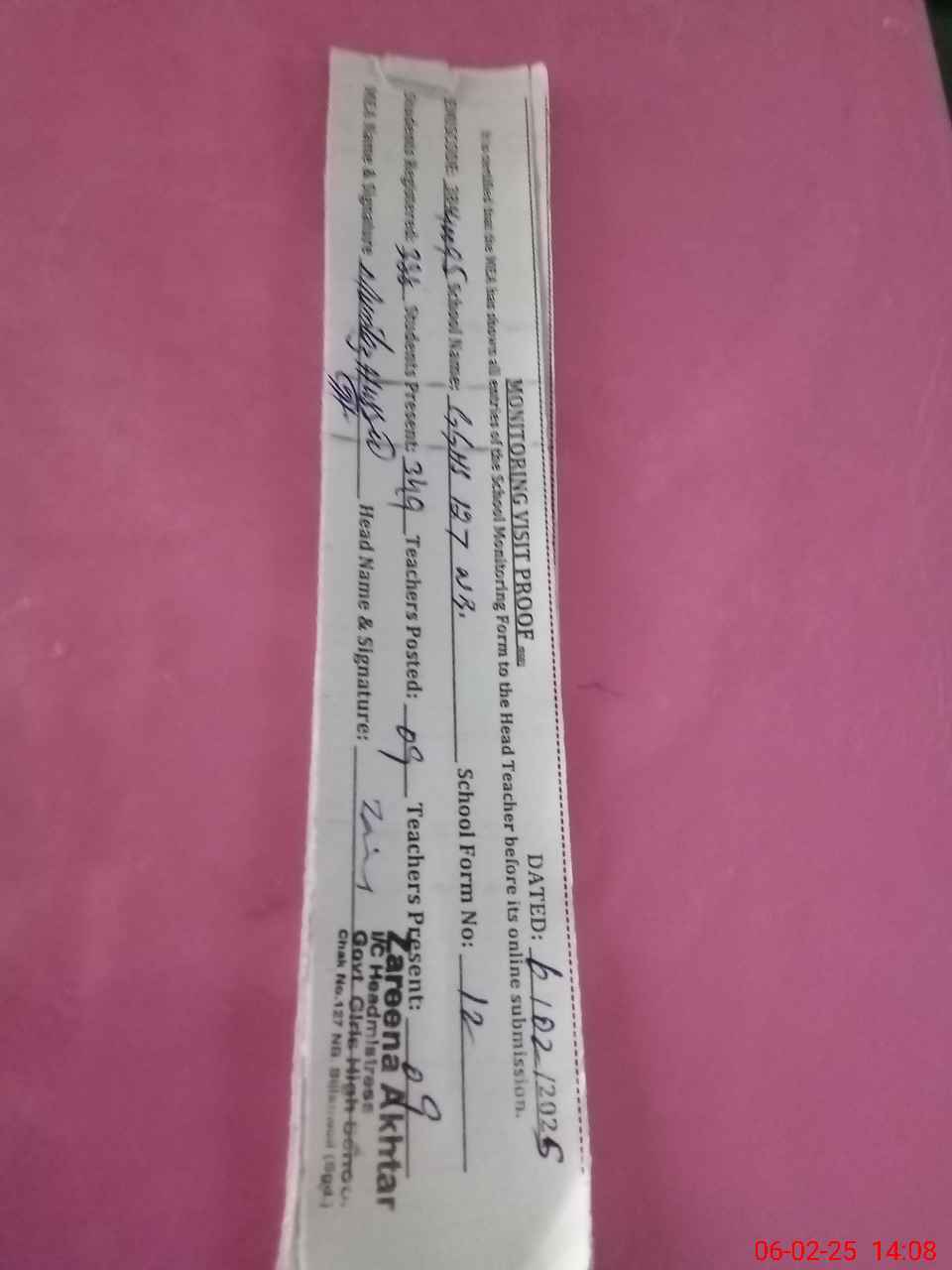 | Name: As**** Sh**** Designation: (School Headmaster's/Headmistress's) SST SCI Phone/Cell Number: 03**** |