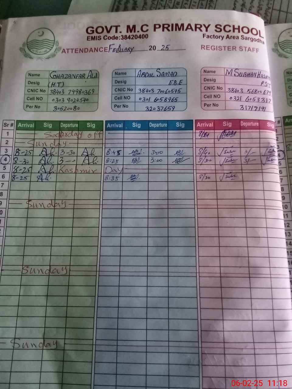 | EMIS Code: 38420400 | Name of School: GPS MC NO. 11 FACTORY AREA SARGODHA | |||