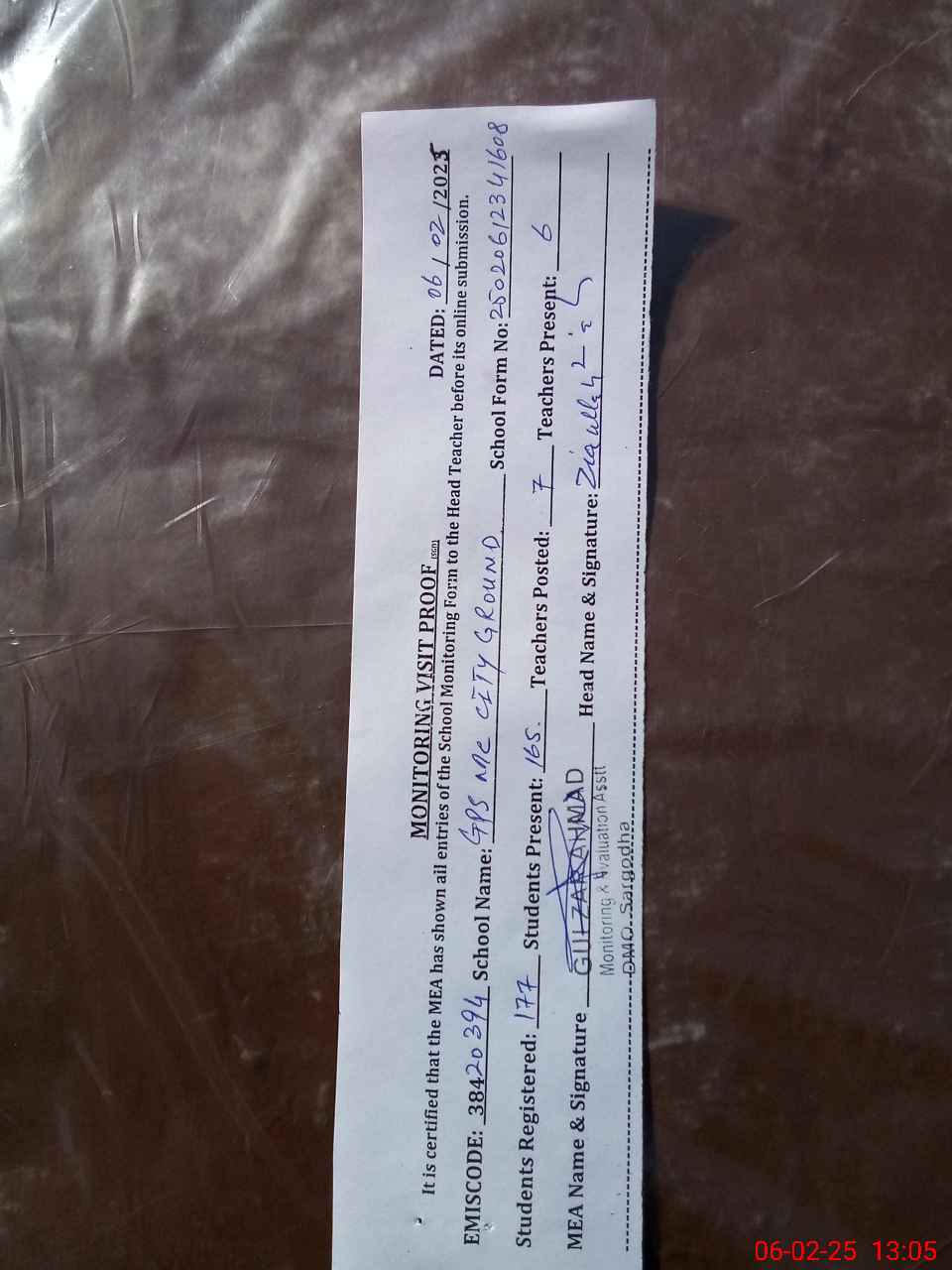 | EMIS Code: 38420394 | Name of School: GPS MC CITY GROUND SARGODHA | |||