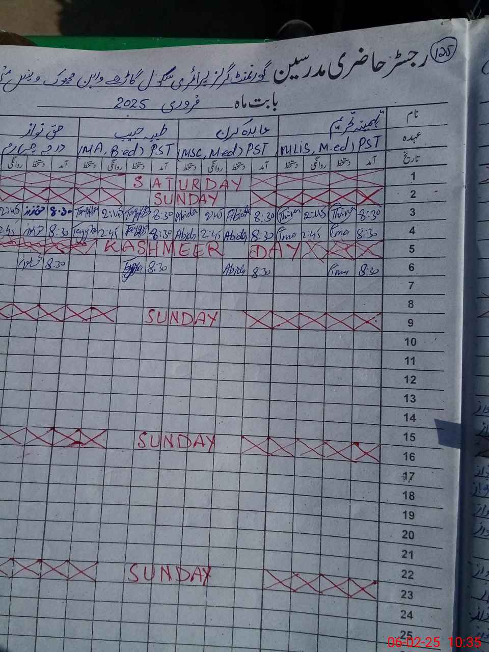 | CNIC | Full Name | Designation | R/C | Absence During Last Calender Month |
