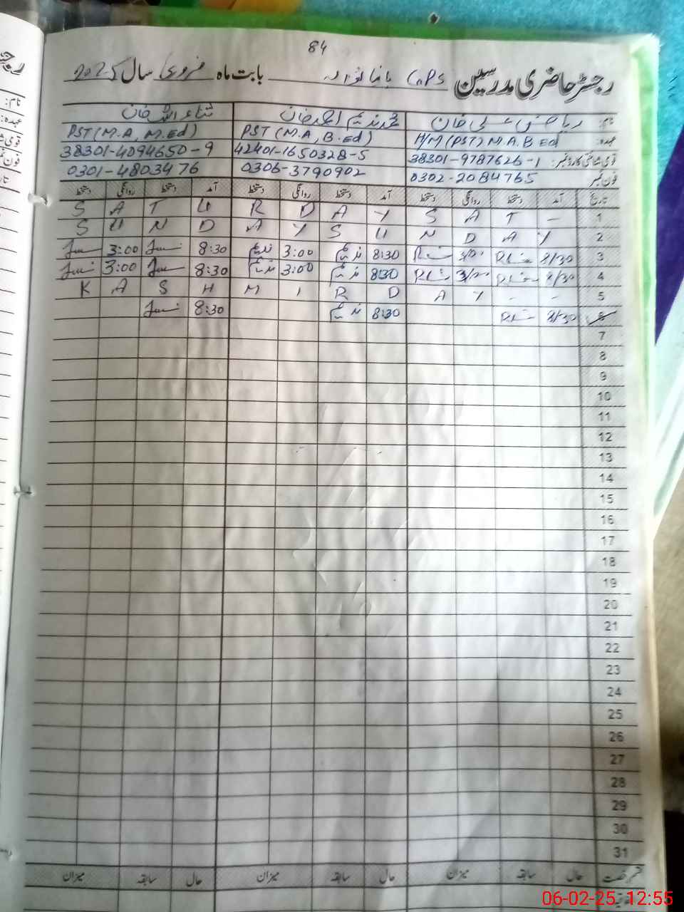 | Name: Ri**** Al**** Kh**** Designation: (School Headmaster's/Headmistress's) PST Phone/Cell Number: 03**** |