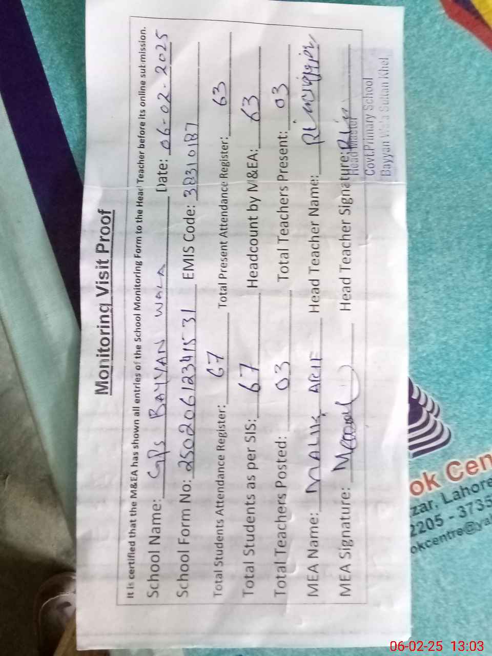 | EMIS Code: 38310187 | Name of School: GPS BAYYAN WALA | |||