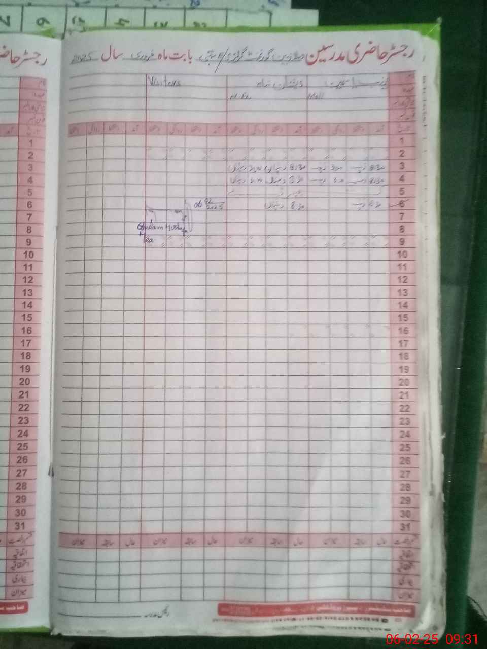| CNIC | Full Name | Designation | R/C | Absence During Last Calender Month |