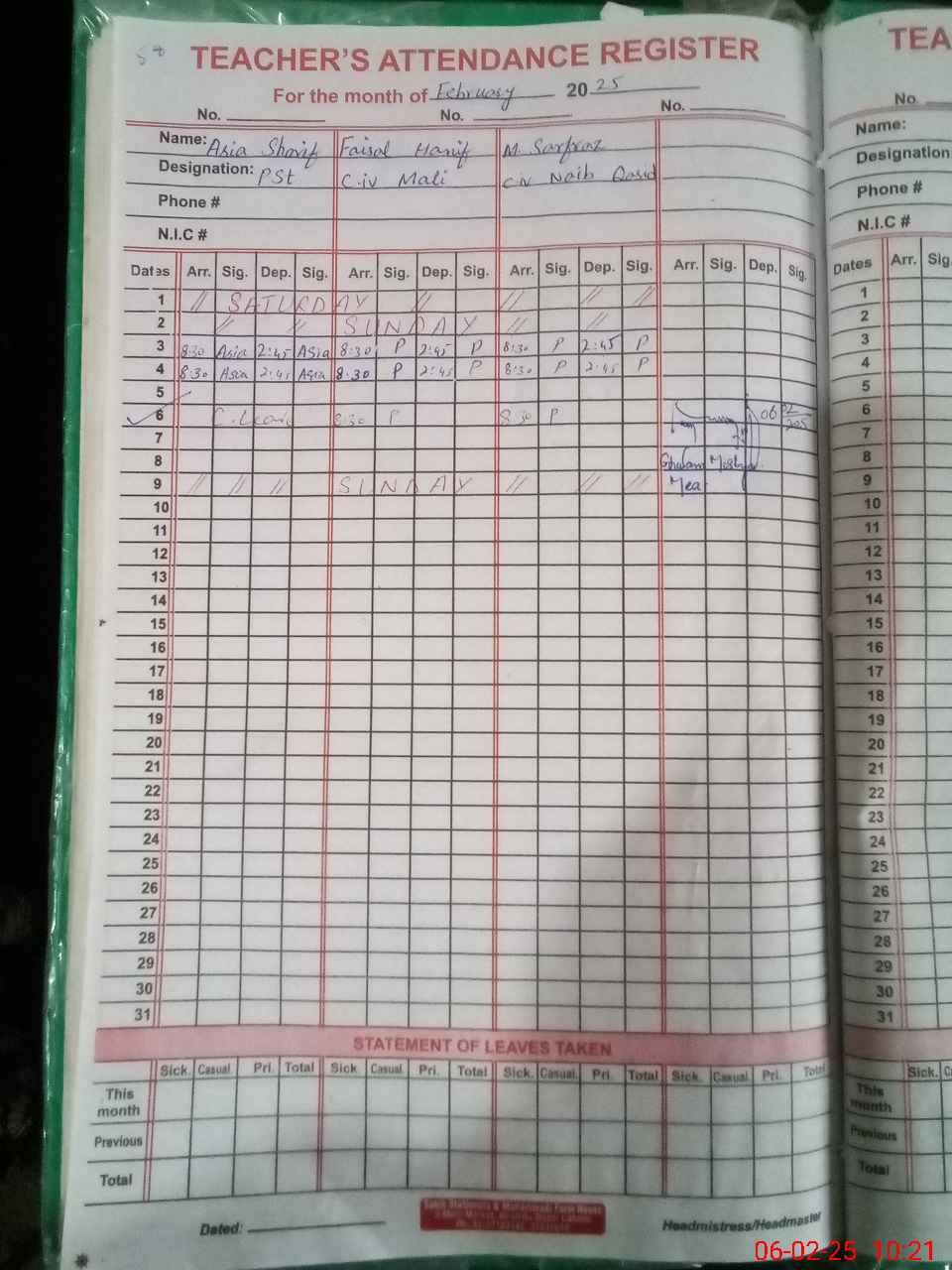 | Name: Mu**** Sh**** Designation: (School Headmaster's/Headmistress's) S.S.T.(Arts) Phone/Cell Number: 03**** |