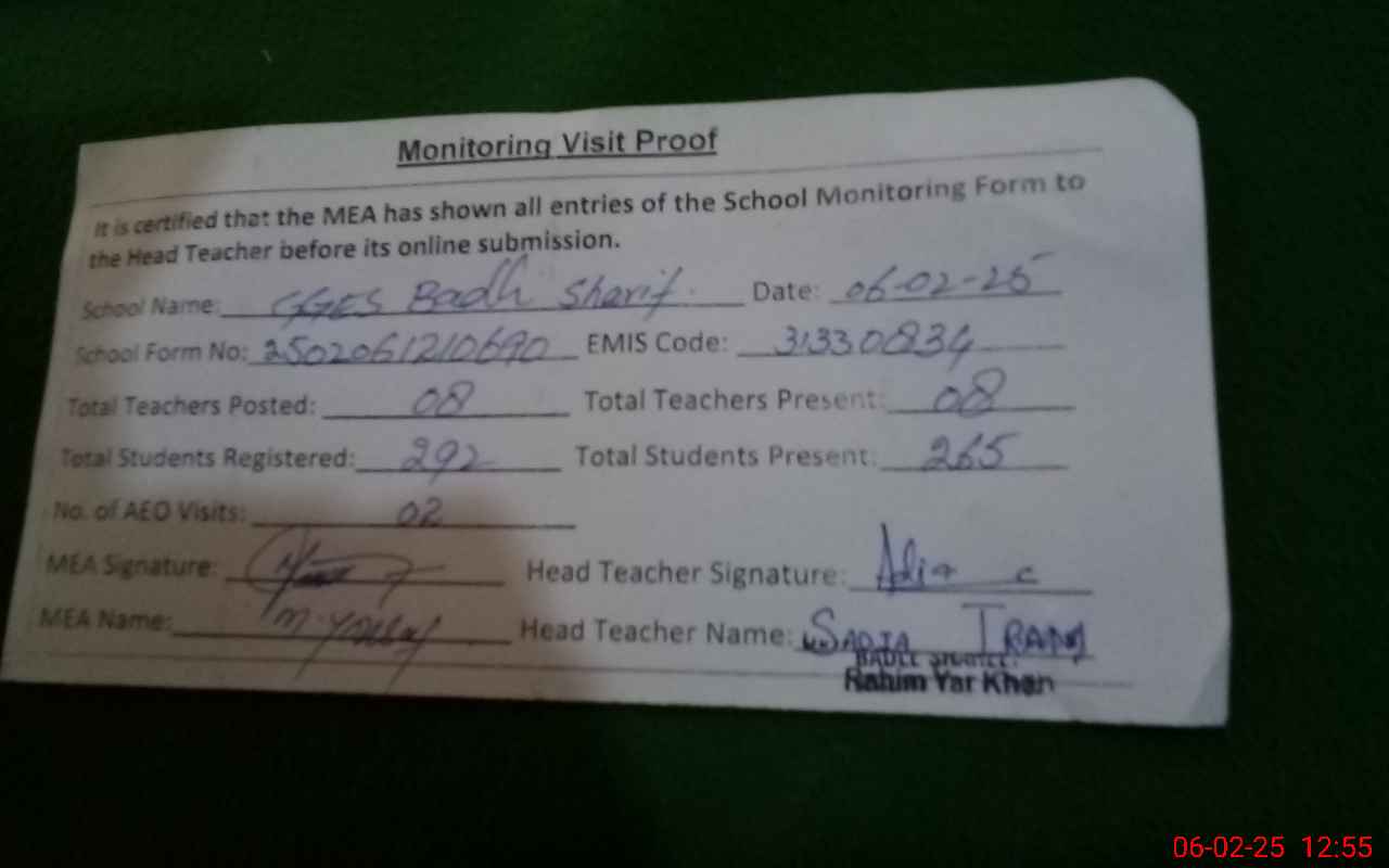 | Certified that this School was Inspected by the Undersigned MEA/DMO Today and the Information Stated Above is as Per Record. | |||||