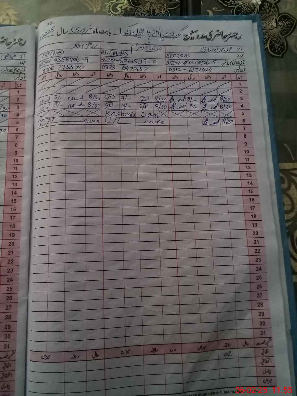 | Name: Sh**** Ah**** Designation: (School Headmaster's/Headmistress's) HM OPS Phone/Cell Number: 03**** |