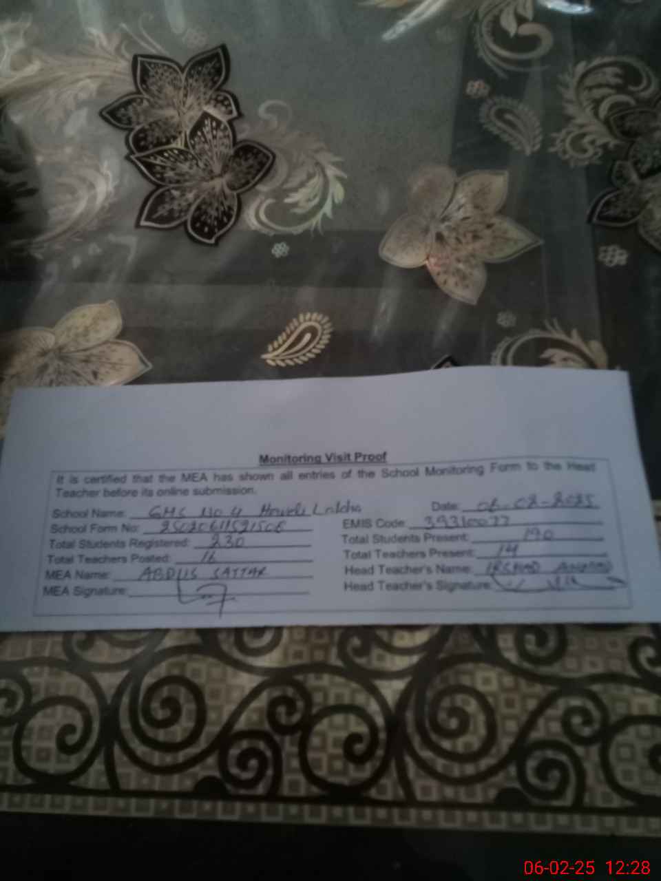 | EMIS Code: 39310077 | Name of School: GHS NO.4 HAVELI LAKHA | |||