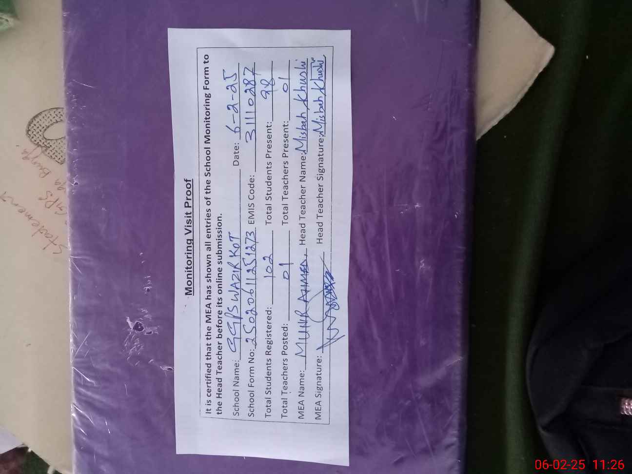 | EMIS Code: 31110287 | Name of School: GGPS WAZIR KOT | |||