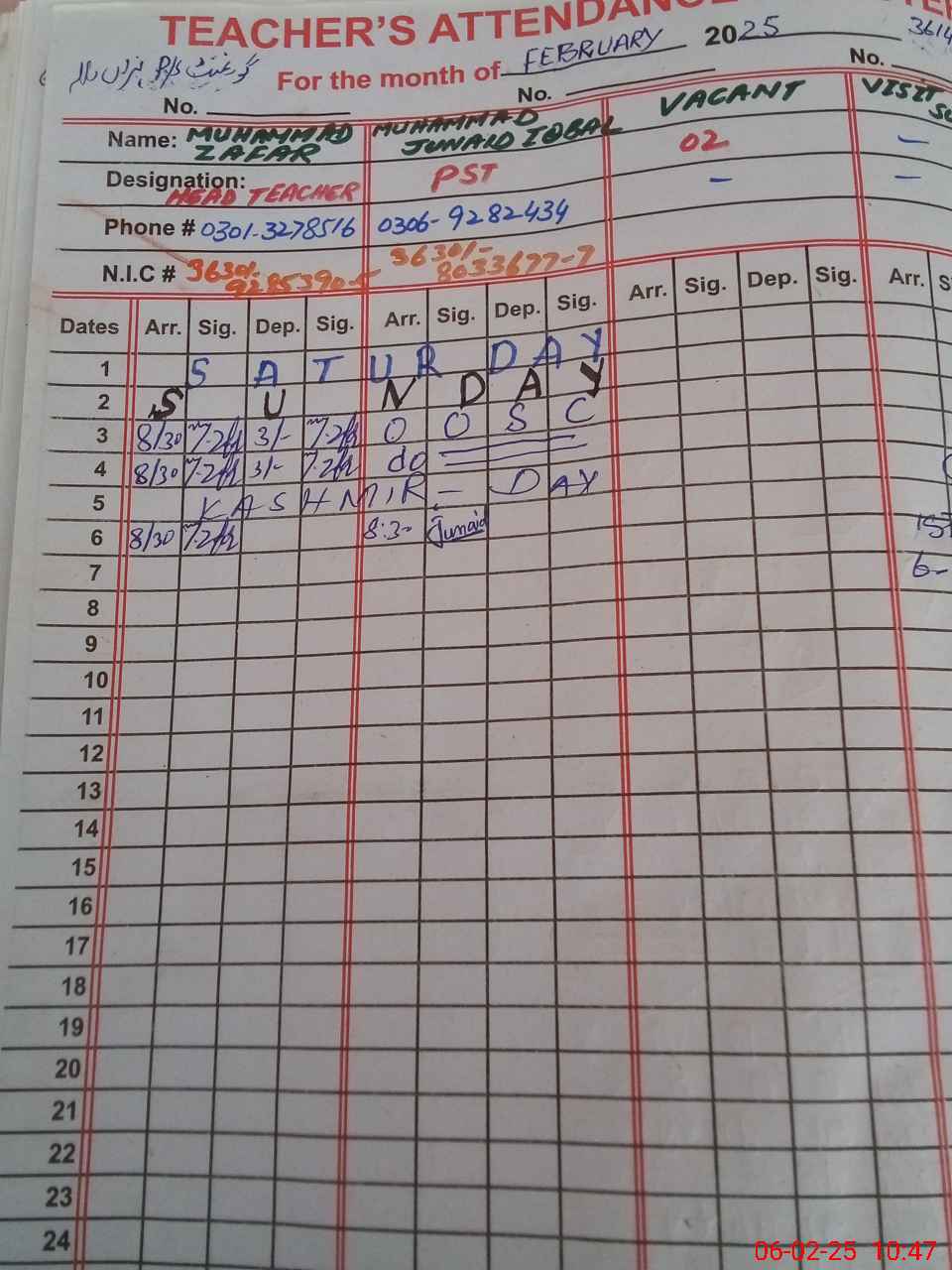| Name: Ab**** Ra**** Designation: (School Headmaster's/Headmistress's) PSSP Phone/Cell Number: 03**** |