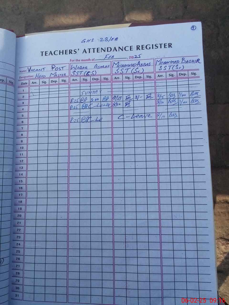 | Name: WA**** AS**** Designation: (School Headmaster's/Headmistress's) SST (COMP SCIENCE) Phone/Cell Number: 03**** |