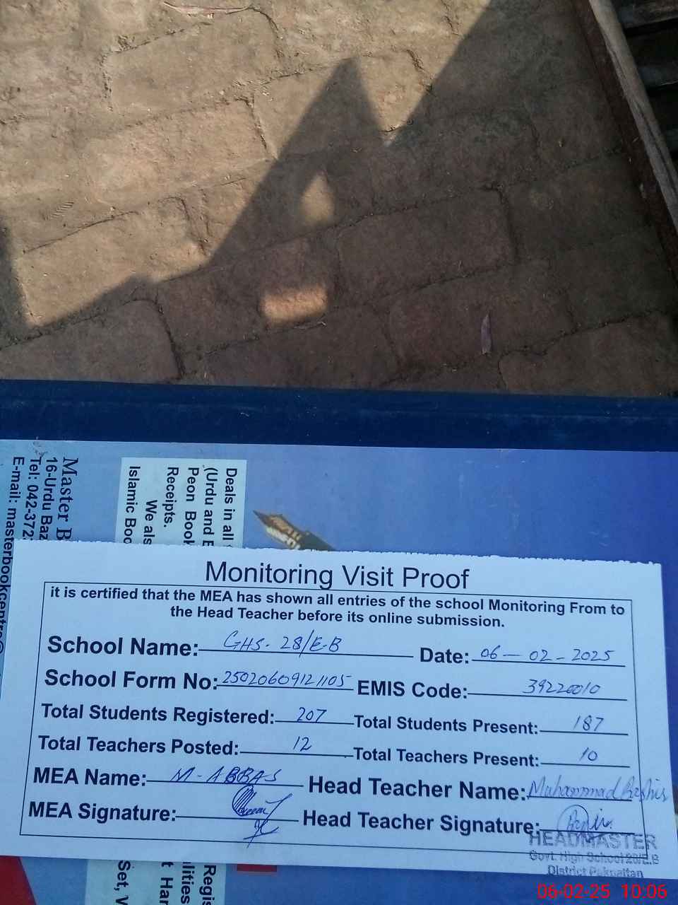 | Attendance Register | Head Teacher | MEA with School | Visit Proof |