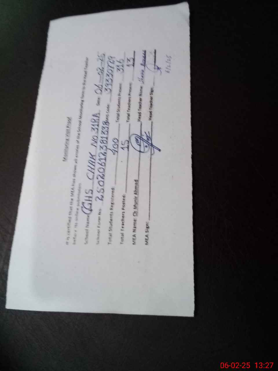 | Name: Hi**** Iq**** Designation: (School Headmaster's/Headmistress's) S.S.T. Sci Phone/Cell Number: 03**** |