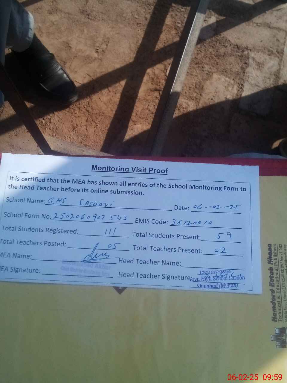 | EMIS Code: 36120010 | Name of School: GHS LASOORI TEH SHUJA ABAD | |||