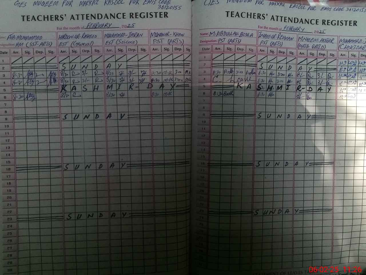 | EMIS Code: 36120155 | Name of School: GES MUQEEM PUR P/O MATOTLI SHUJABAD | |||