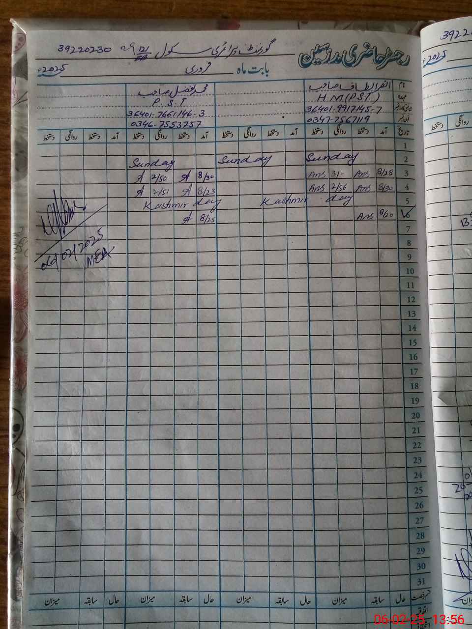 | Name: AN**** AL**** Designation: (School Headmaster's/Headmistress's) PST Phone/Cell Number: 03**** |