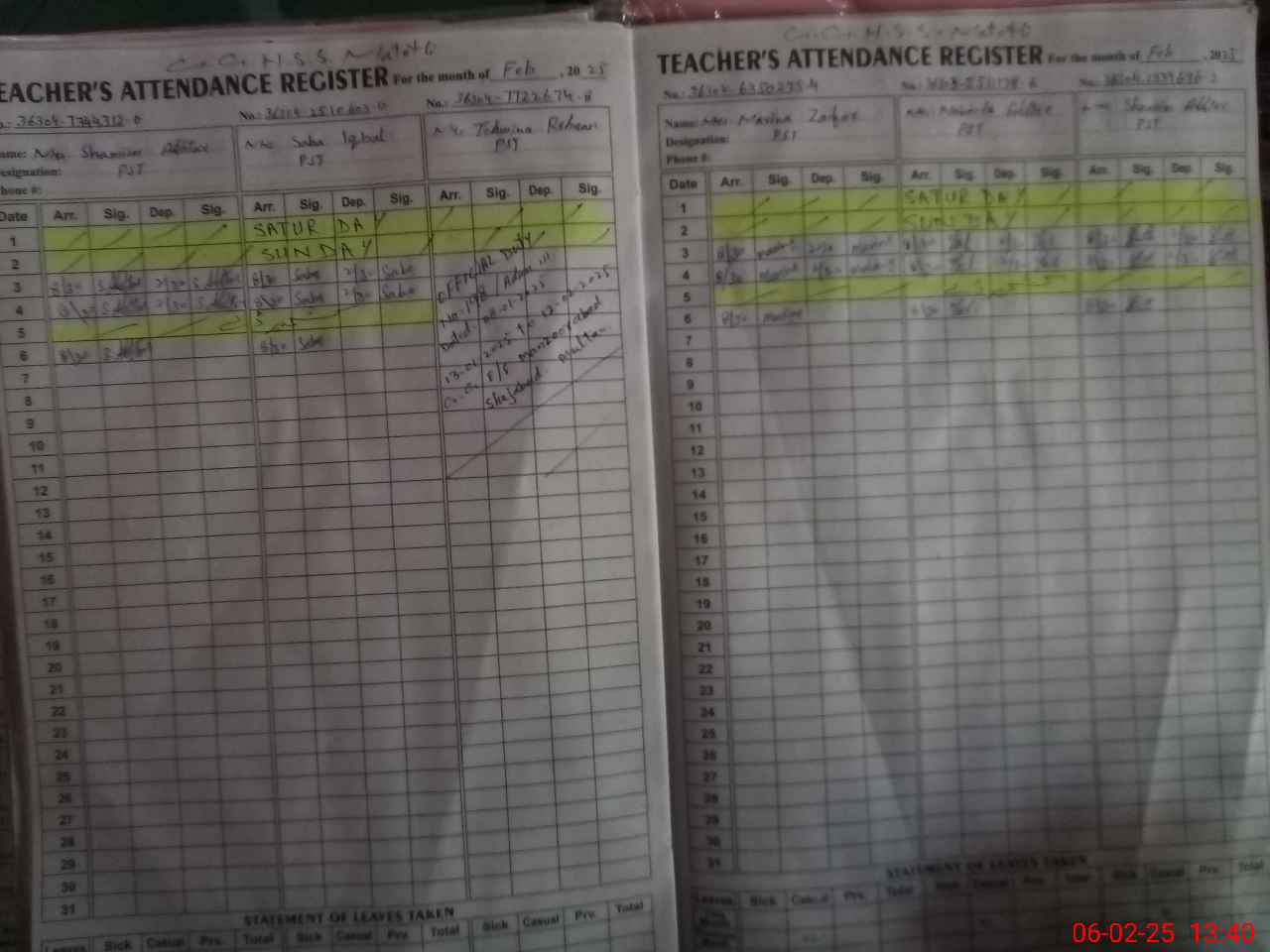 | Remarks (Use Separate Page if Required): 1st visit NSB and books record entered as per short summary Teacher attached to GGES Manzoorabad vide CEO office no 198 admin III dated 08 Jan 2025 | |||||
