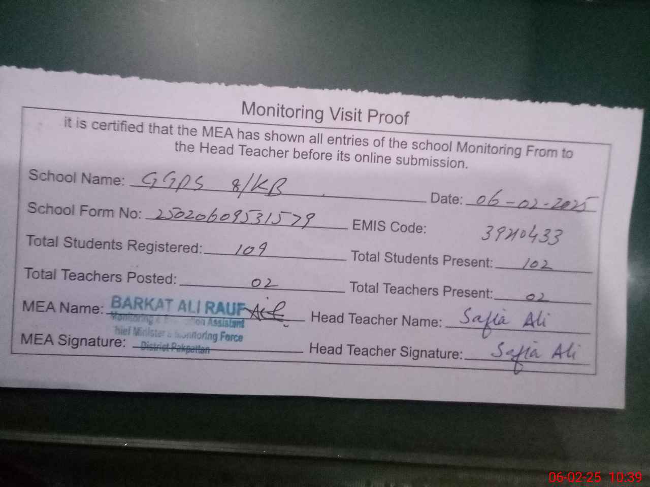 | EMIS Code: 39210433 | Name of School: GGPS CHAK 8 KB | |||