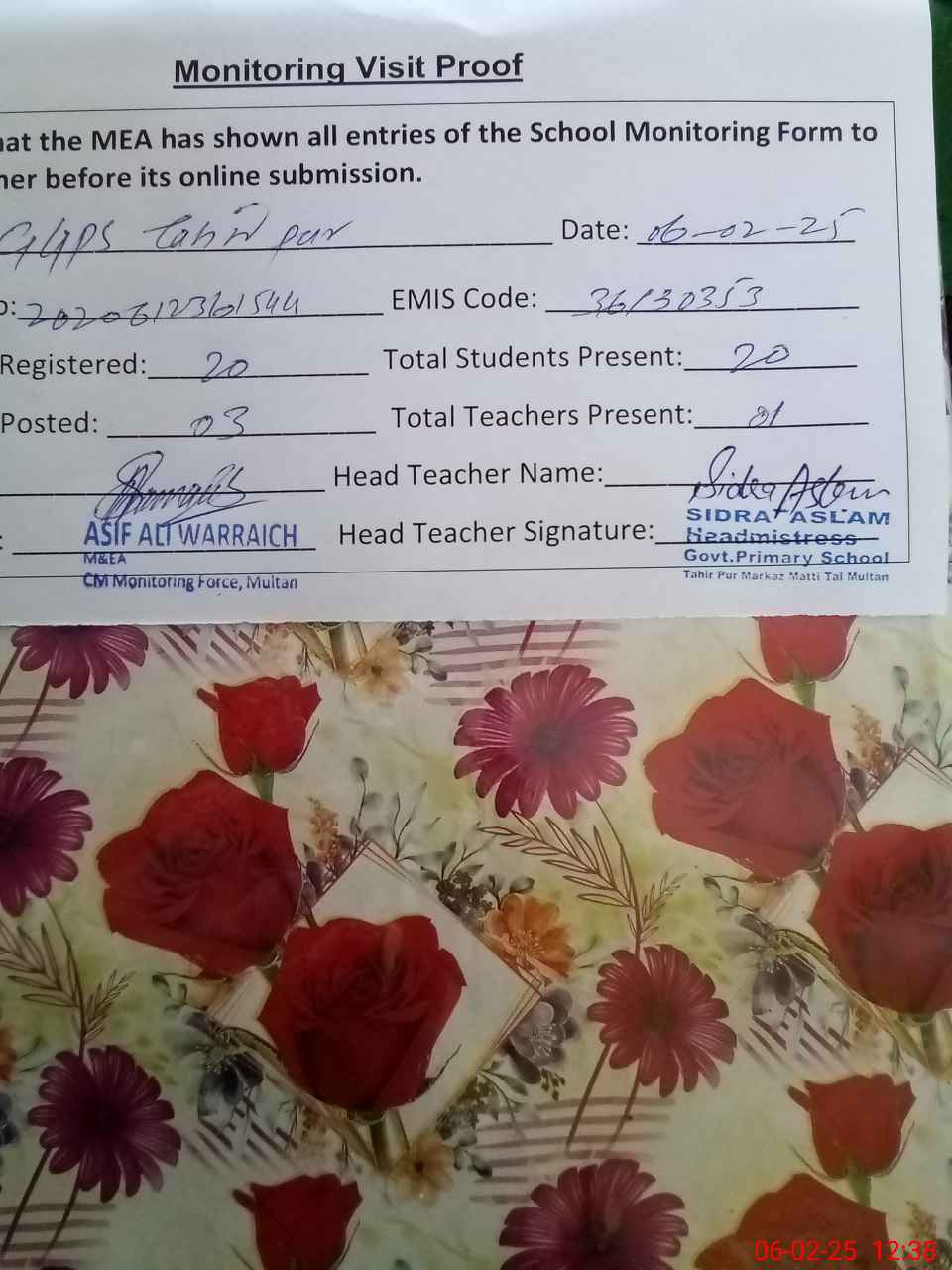 | EMIS Code: 36130353 | Name of School: GGPS TAHIR PUR MULTAN | |||