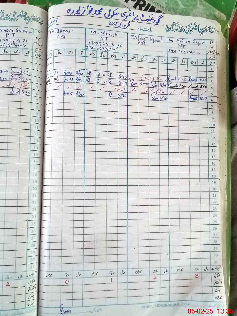 | CNIC | Full Name | Designation | R/C | Absence During Last Calender Month |