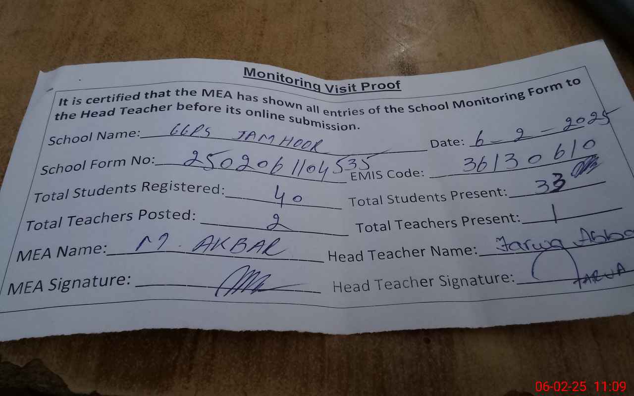 | EMIS Code: 36130610 | Name of School: GGPS JAMHOOR | |||