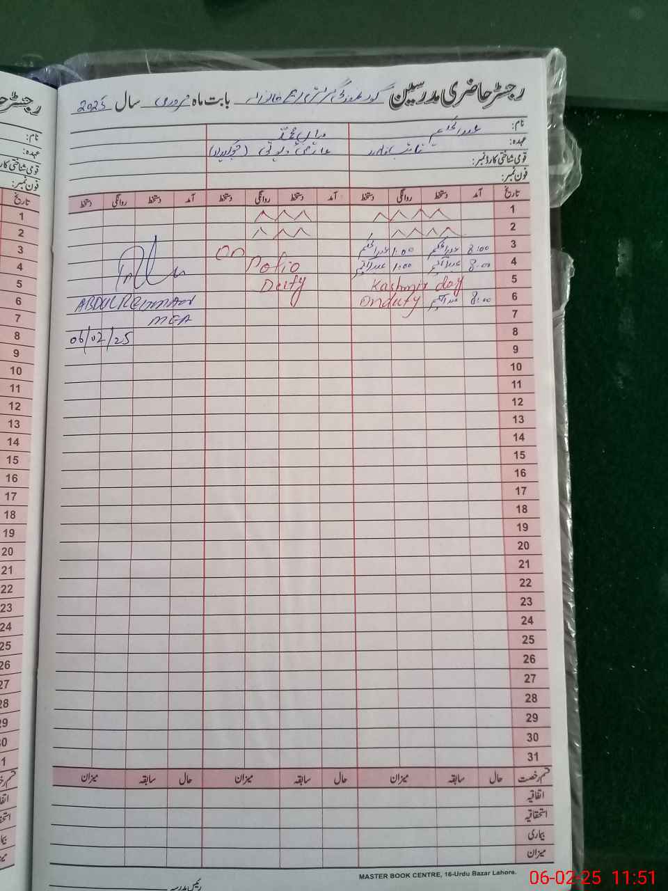 | CNIC | Full Name | Designation | R/C | Absence During Last Calender Month |