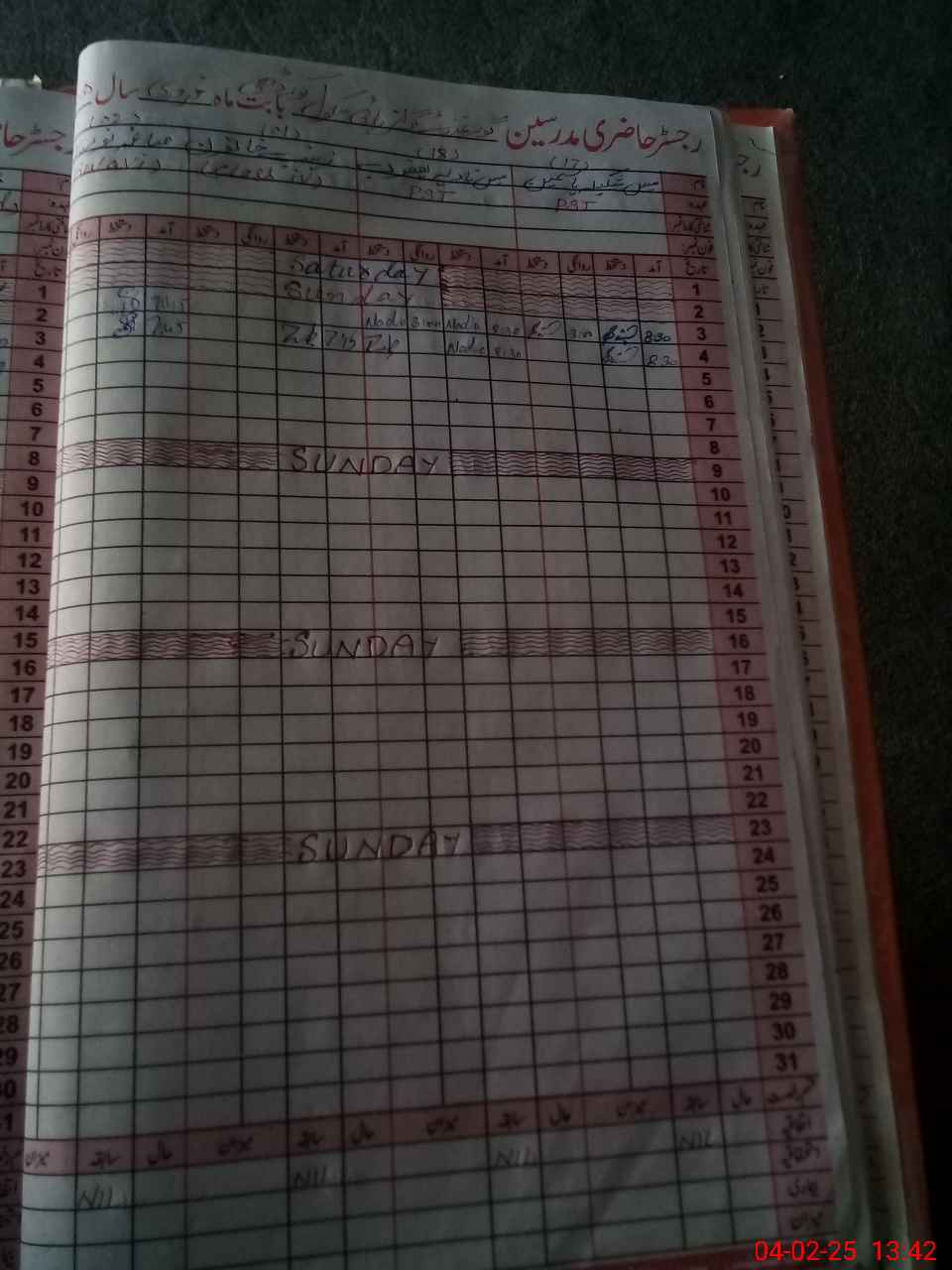 | CNIC | Full Name | Designation | R/C | Absence During Last Calender Month |