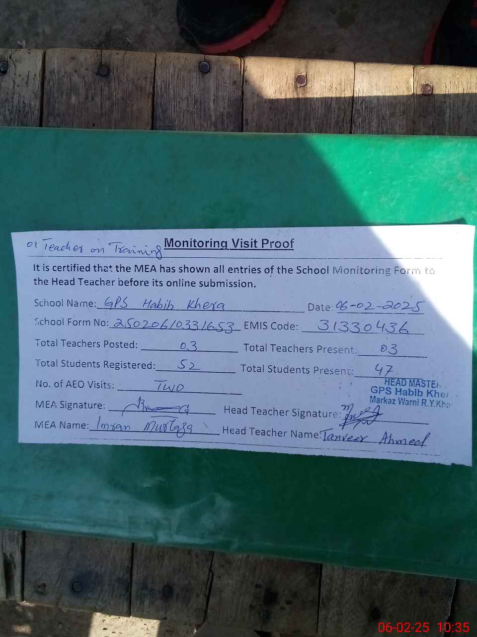 | EMIS Code: 31330436 | Name of School: GPS HABIB KHERA | |||