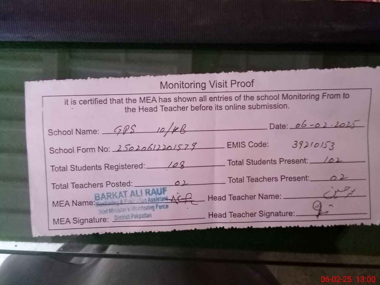 | EMIS Code: 39210153 | Name of School: GPS 10 KB | |||