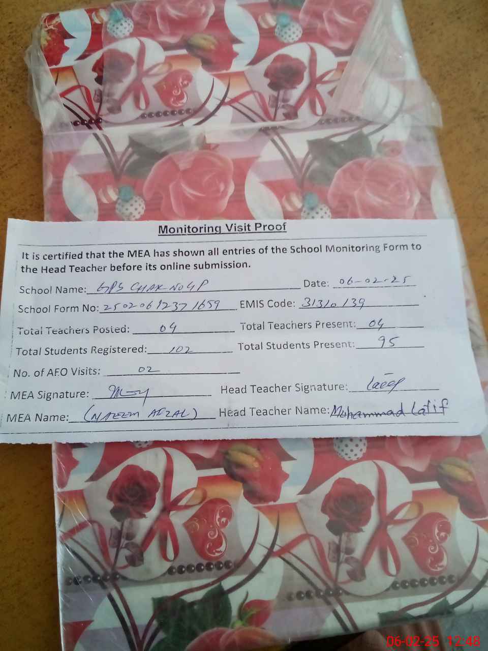 | EMIS Code: 31310139 | Name of School: GPS CHAK NO 4/P | |||