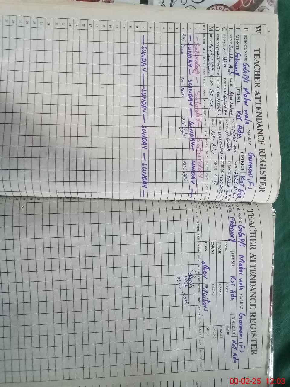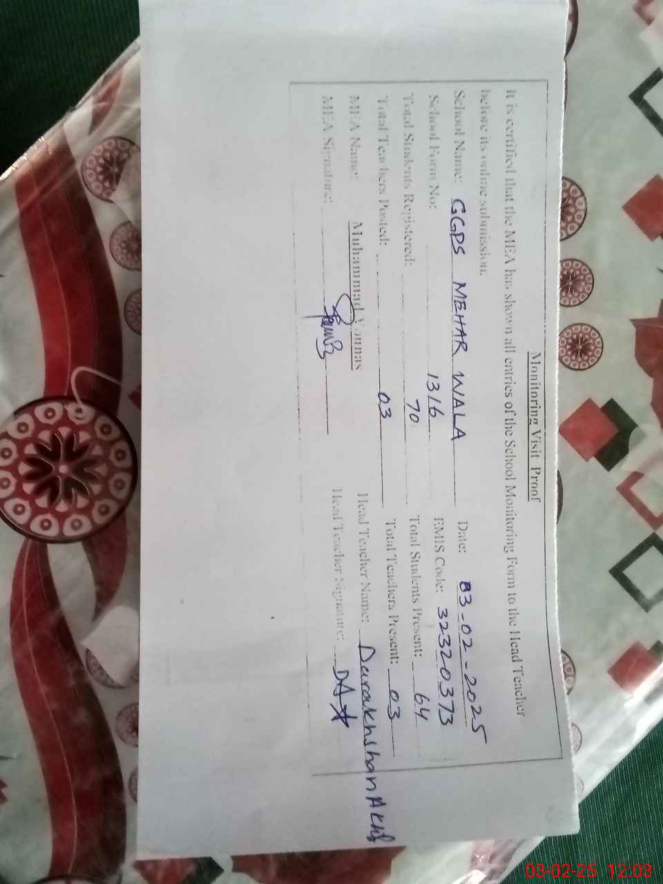 | EMIS Code: 32320373 | Name of School: GGPS MEHAR WALA | |||