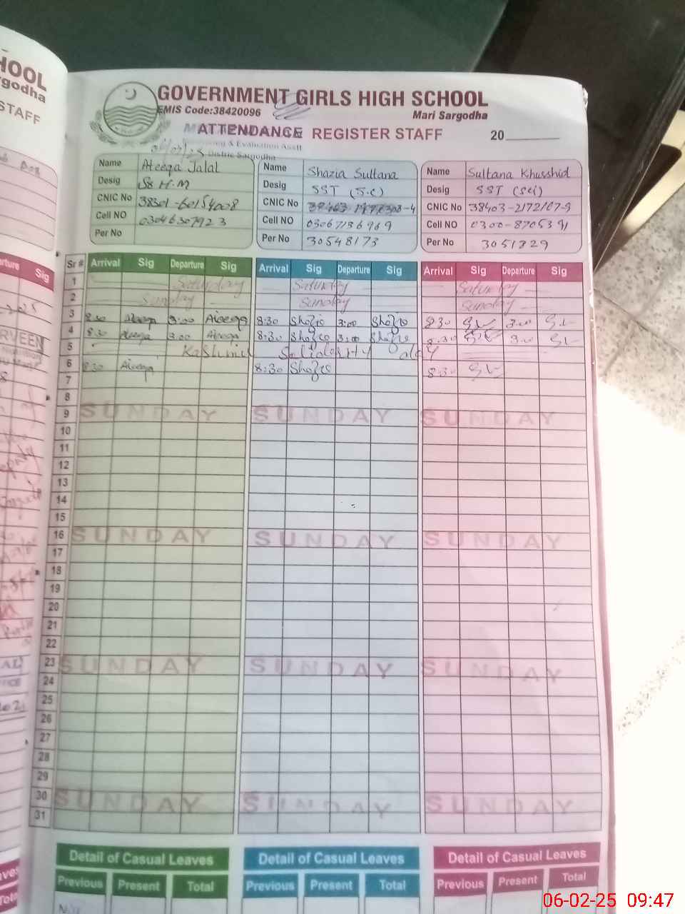 | Name: At**** Ja**** Designation: (School Headmaster's/Headmistress's) Sr. HEADMISTRESS Phone/Cell Number: 03**** |