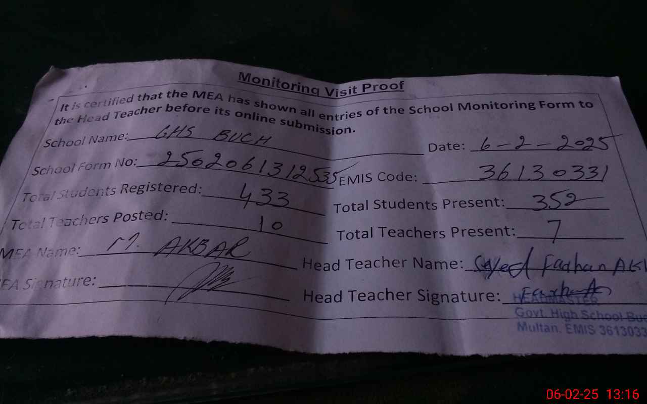 | EMIS Code: 36130331 | Name of School: GHS BUCH P/O KHOKHAR | |||