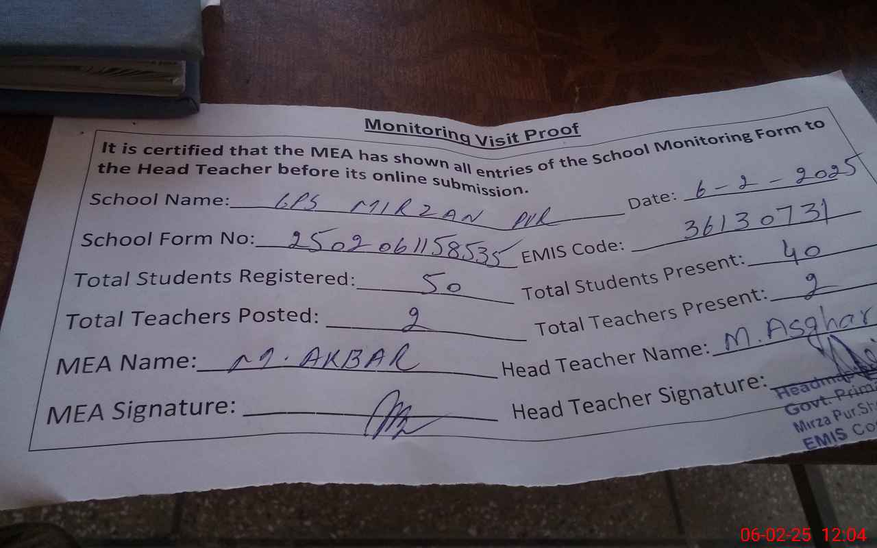 | EMIS Code: 36130731 | Name of School: GPS MIRZAN PUR | |||