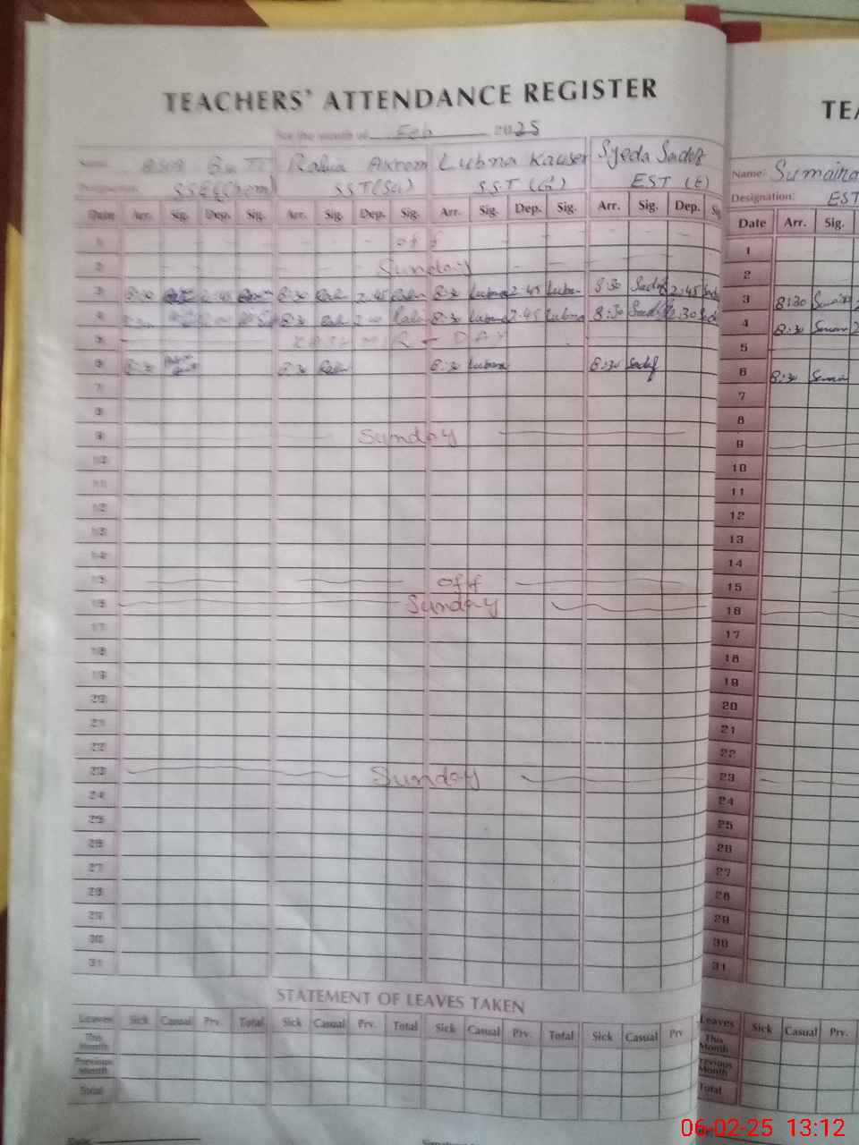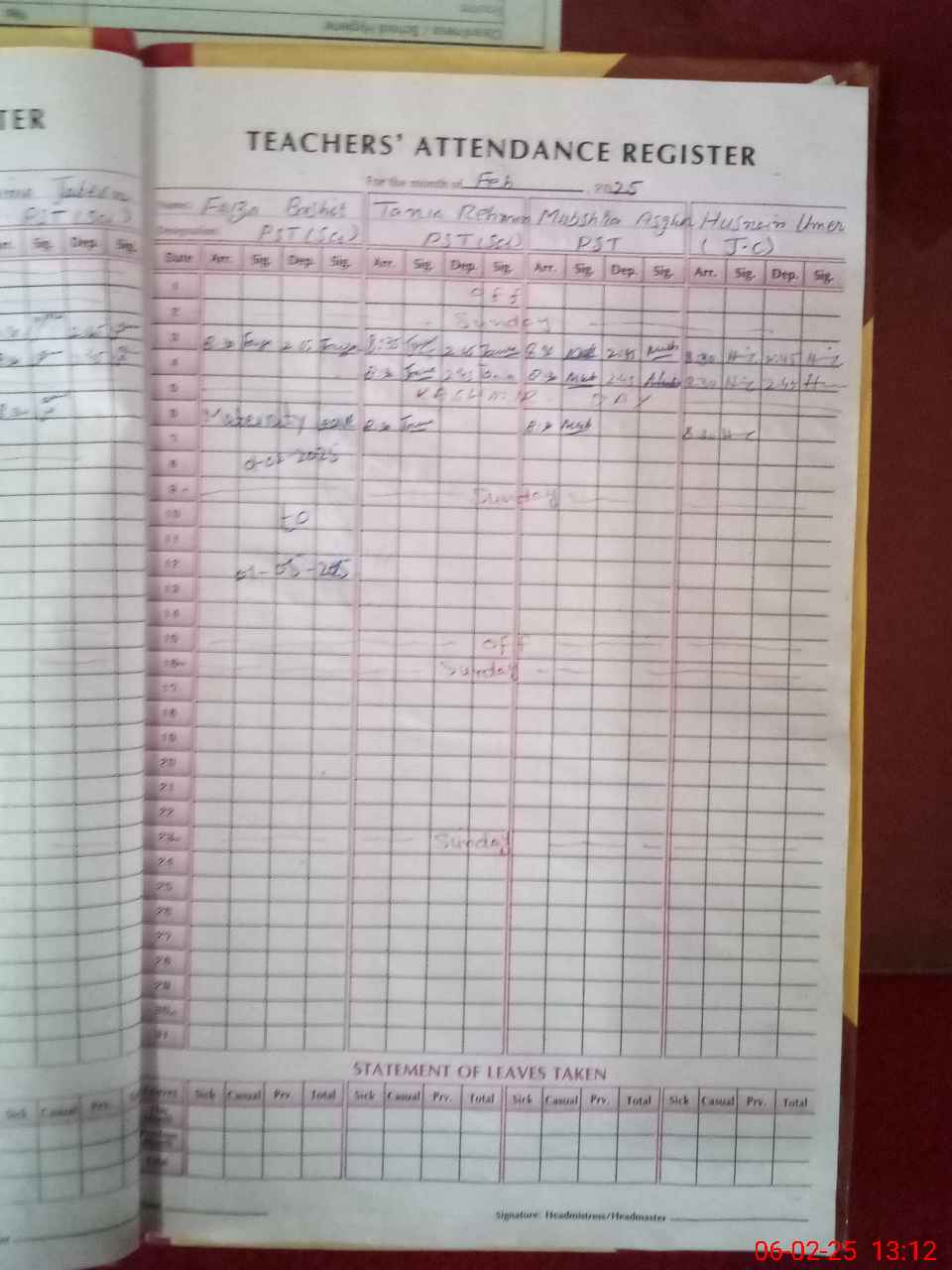| Leave | Duty | Absent | Maternity | Medical | Ex- Pak |