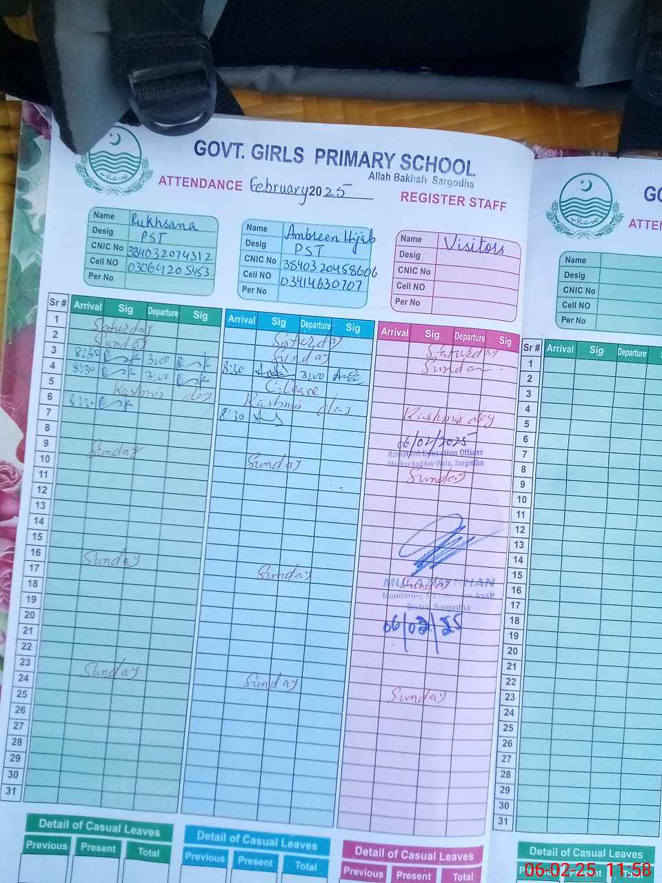 | Name: RU**** PA**** Designation: (School Headmaster's/Headmistress's) PST Phone/Cell Number: 03**** |