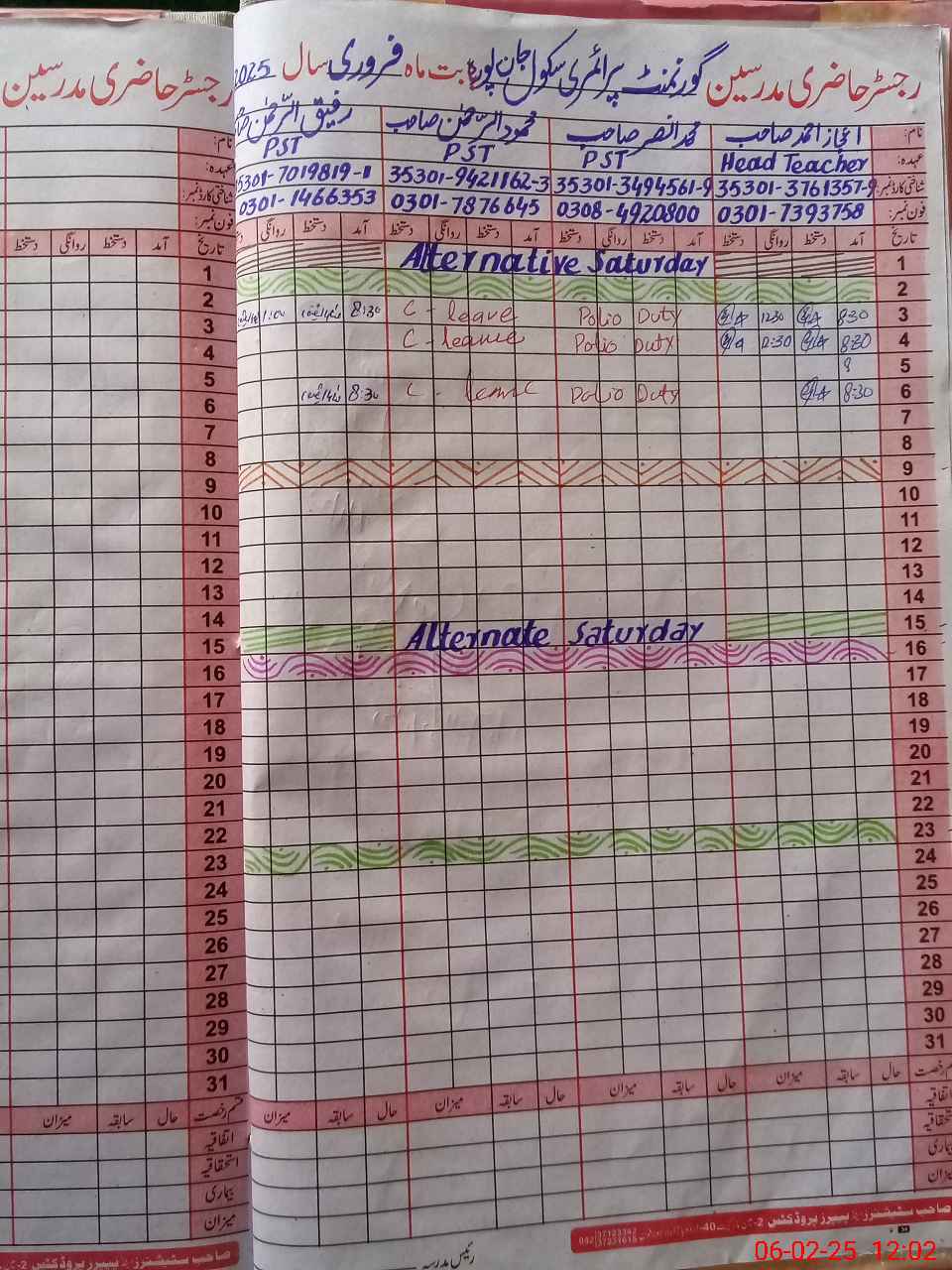 | CNIC | Full Name | Designation | R/C | Absence During Last Calender Month |