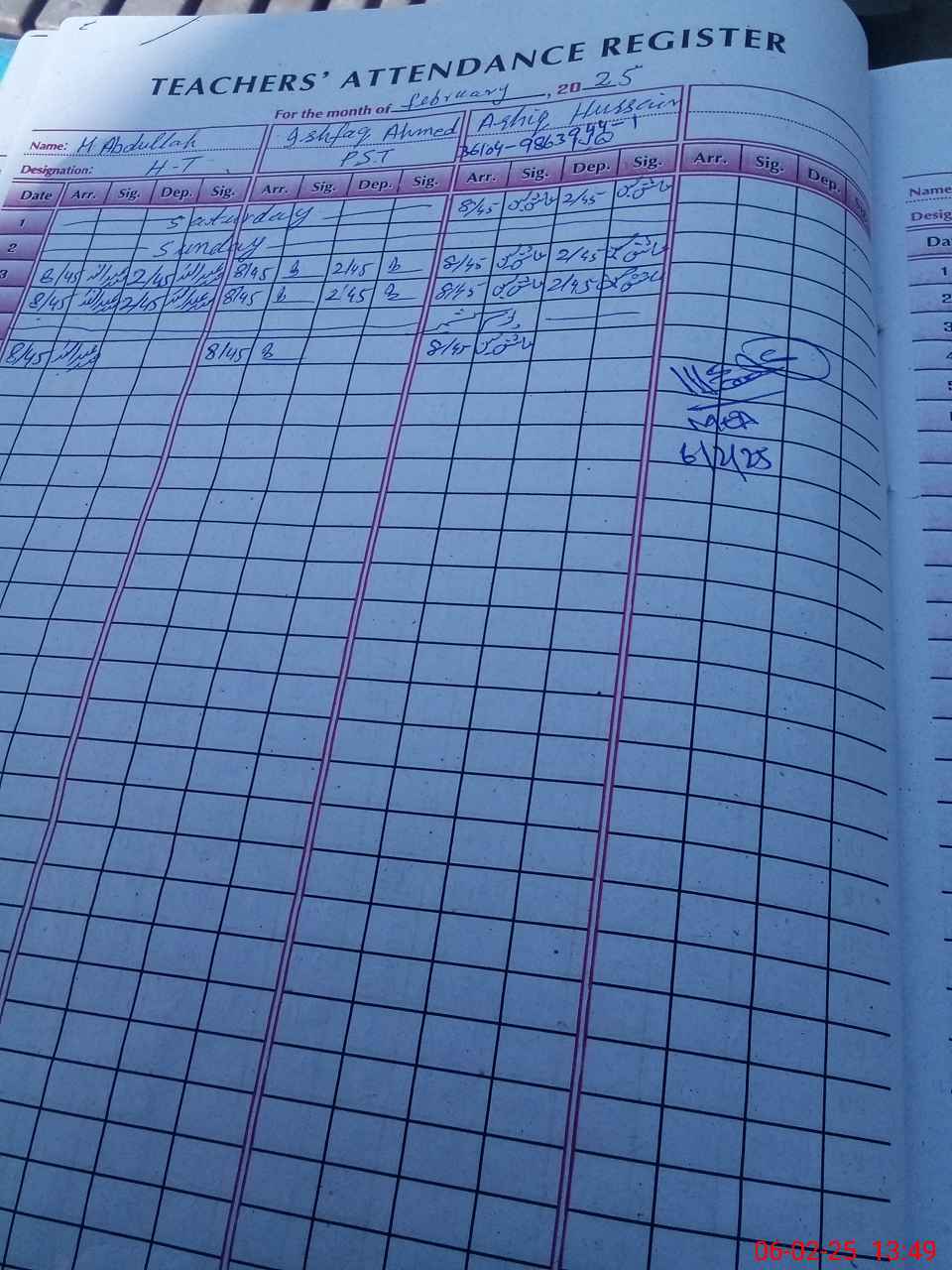 | Name: MAb**** Designation: (School Headmaster's/Headmistress's) PST Phone/Cell Number: 03**** |