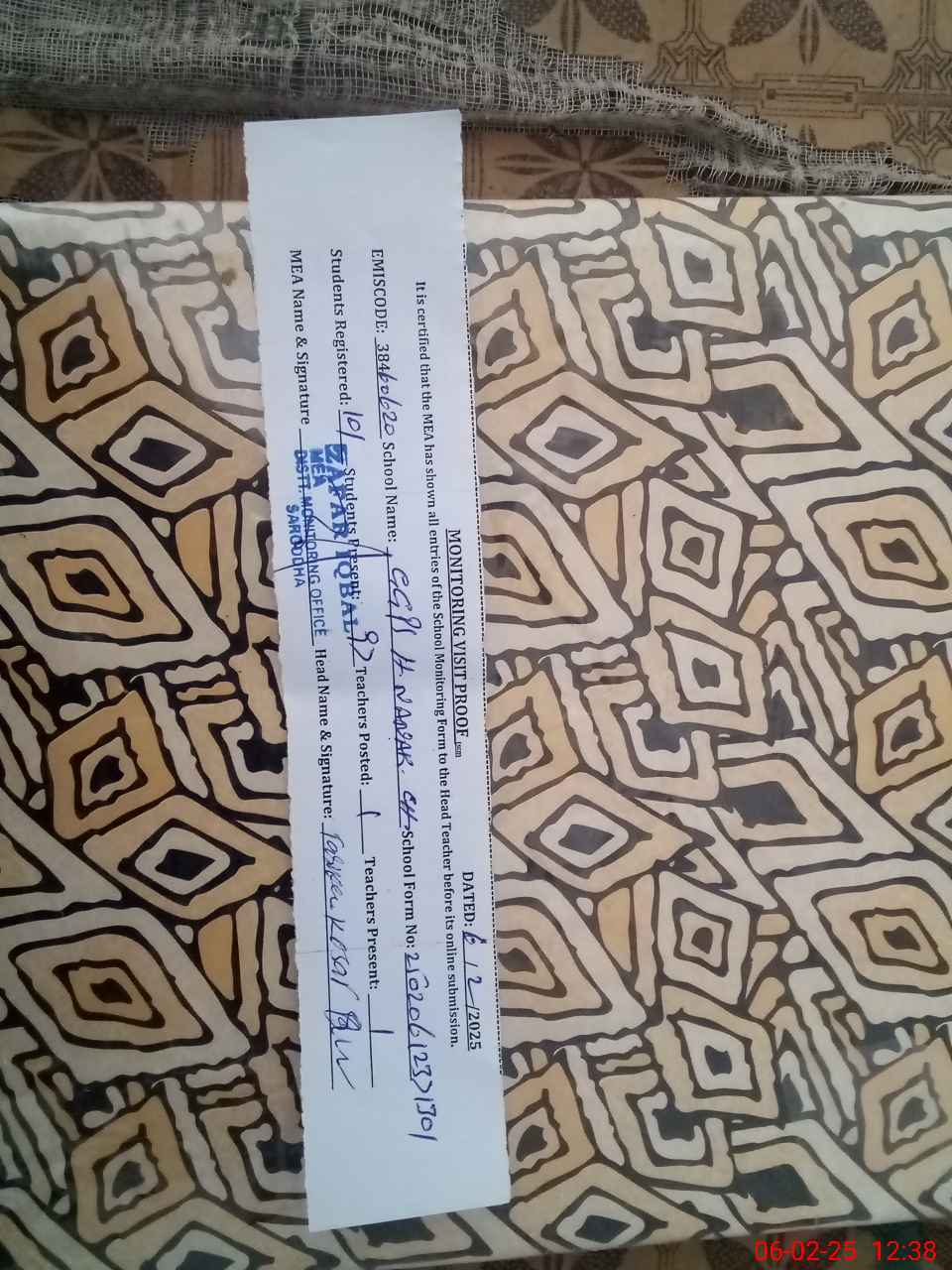 | Certified that this School was Inspected by the Undersigned MEA/DMO Today and the Information Stated Above is as Per Record. | |||||