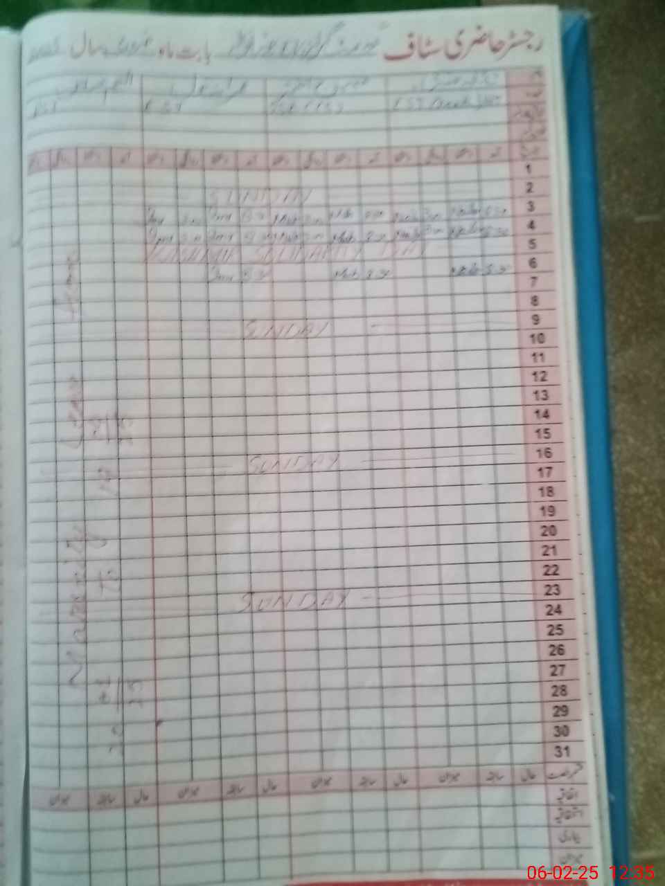 | CNIC | Full Name | Designation | R/C | Absence During Last Calender Month |