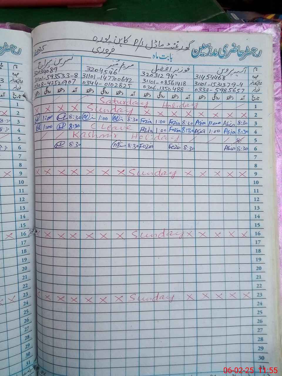| CNIC | Full Name | Designation | R/C | Absence During Last Calender Month |