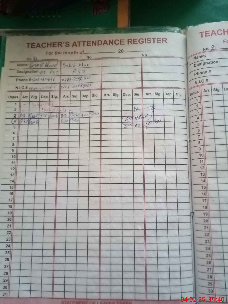 | Name: MAS**** Designation: (School Headmaster's/Headmistress's) PST Phone/Cell Number: 03**** |