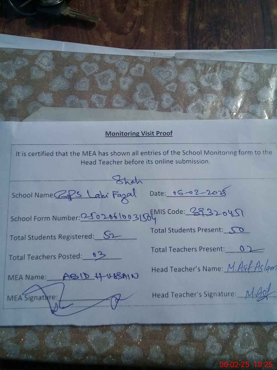 | EMIS Code: 39320451 | Name of School: GPS LAHI FAZAL SHAH | |||